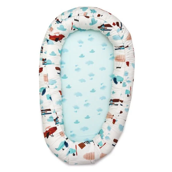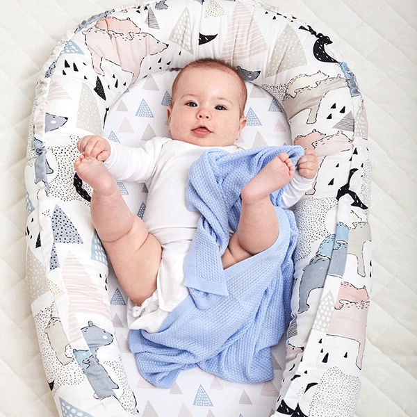 The cocoon wraps the baby and protects it from falling down from the bed or couch. Parents can rest assured that their baby will stay in its place and will not cause itself any harm. The baby cocoon will be a perfect accessory during trips or family meetings. The baby can safely nap or rest. The cocoon is soft so it can be placed on the floor. It can be used as a comfortable changing mat or – once the child is old enough – as a fun mat.