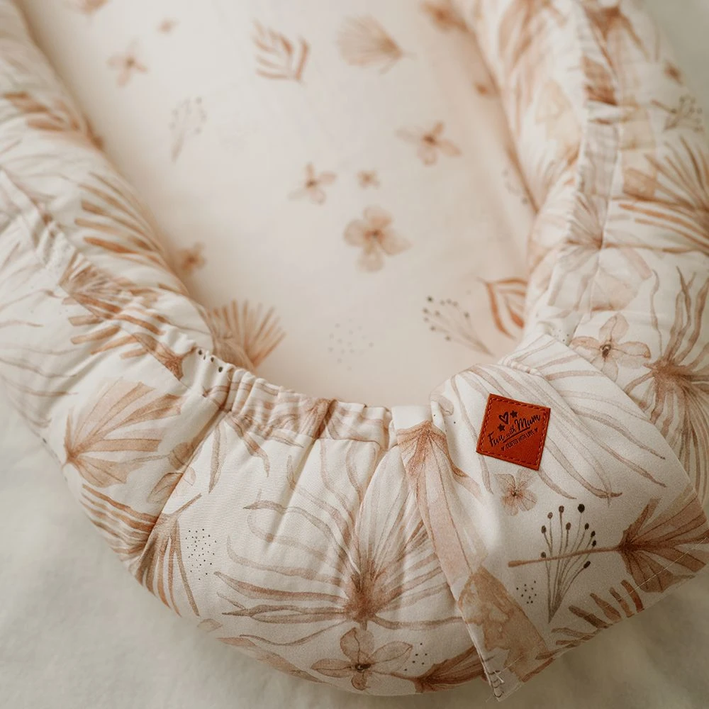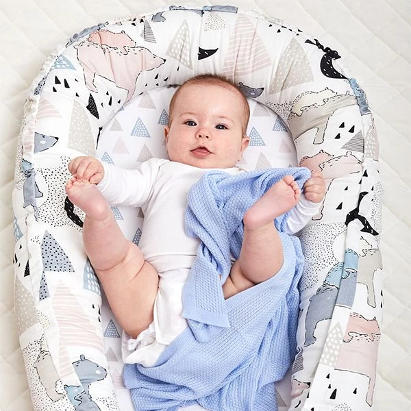 The cocoon wraps the baby and protects it from falling down from the bed or couch. Parents can rest assured that their baby will stay in its place and will not cause itself any harm. The baby cocoon will be a perfect accessory during trips or family meetings. The baby can safely nap or rest. The cocoon is soft so it can be placed on the floor. It can be used as a comfortable changing mat or – once the child is old enough – as a fun mat.