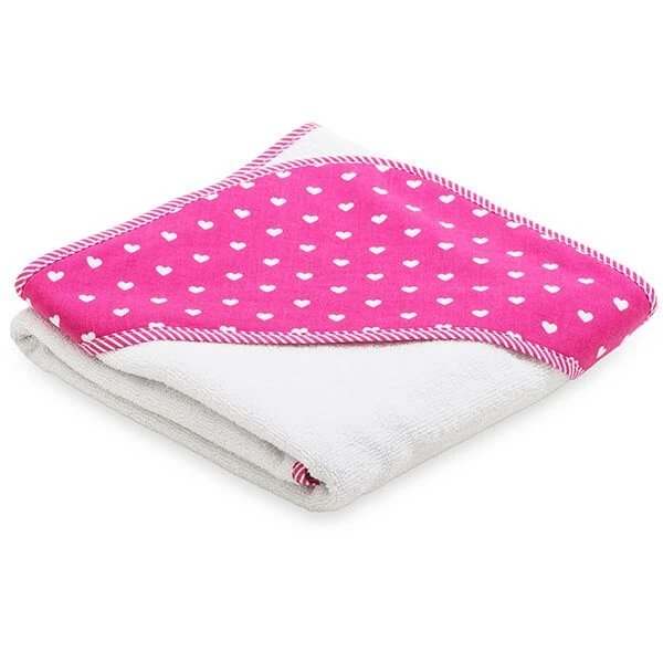 Soft and cuddly baby towel with hood. This towel has been designed and manufactured to make the first baths of your baby more pleasant and to ensure warmth and comfort. The hood protects the head against chilling while the proper towel size enables to fully cover your baby.