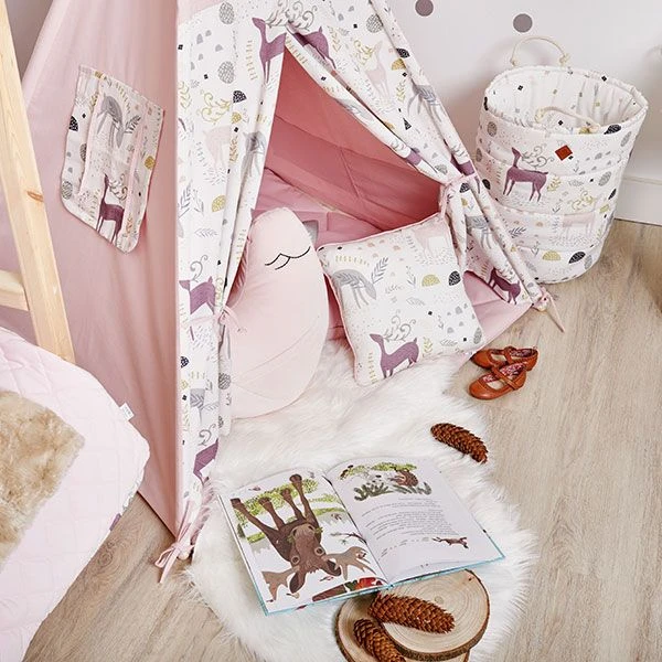 Colourful on both sides, a perfect match for our teepee tents. The inside is filled with a thick non-woven fabric, which makes it soft and stiff at the same time.