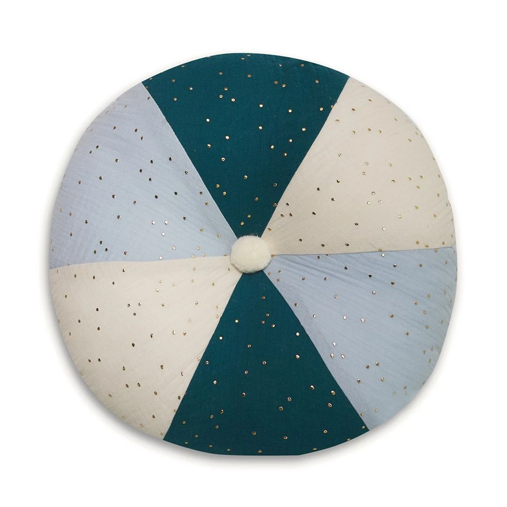 It is made of soft muslin with 100% cotton. The interior is made of silicone filling. The pillow is decorated with gold dots, which add even more charm and stylish character.