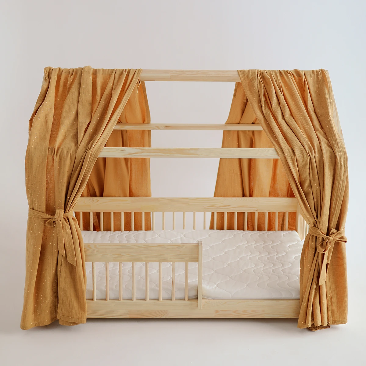 Add a touch of magic and warmth to your baby’s room with our muslin cottage bed curtains.
