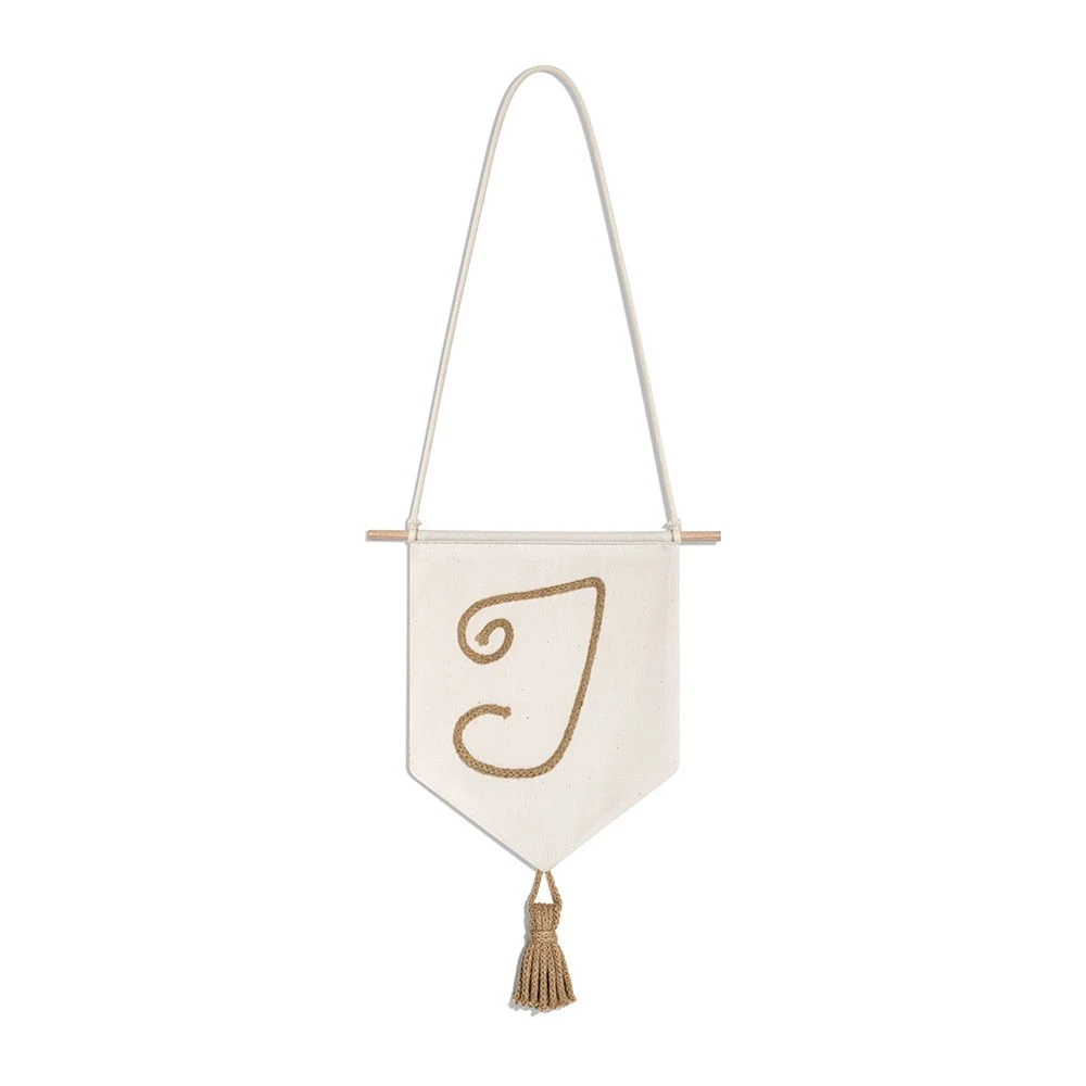 The cotton pennant hangs on a wooden stick with a threaded string to hang anywhere. It is finished with a beautiful hoop for an elegant look.