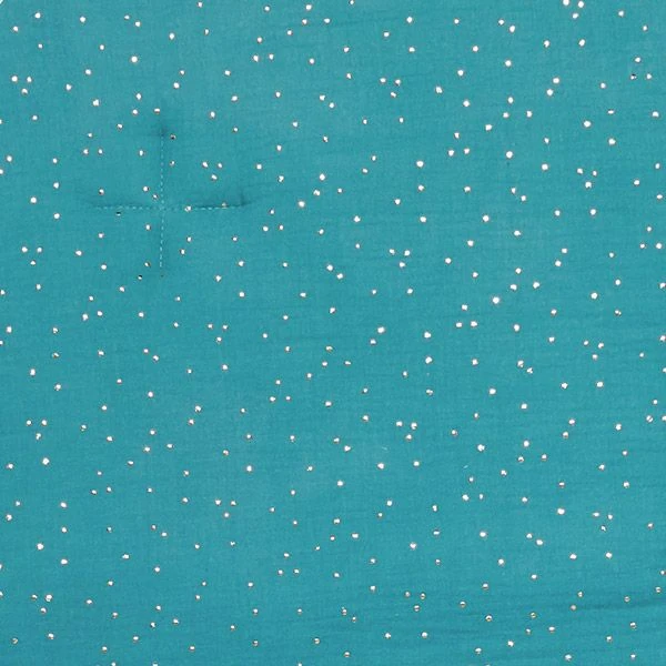 The mat is made of soft, pleasant-to-touch cotton muslin. It is decorated with gold dots, which add to its elegant look. Inside it has fluffy, anti-allergenic silicone filling.