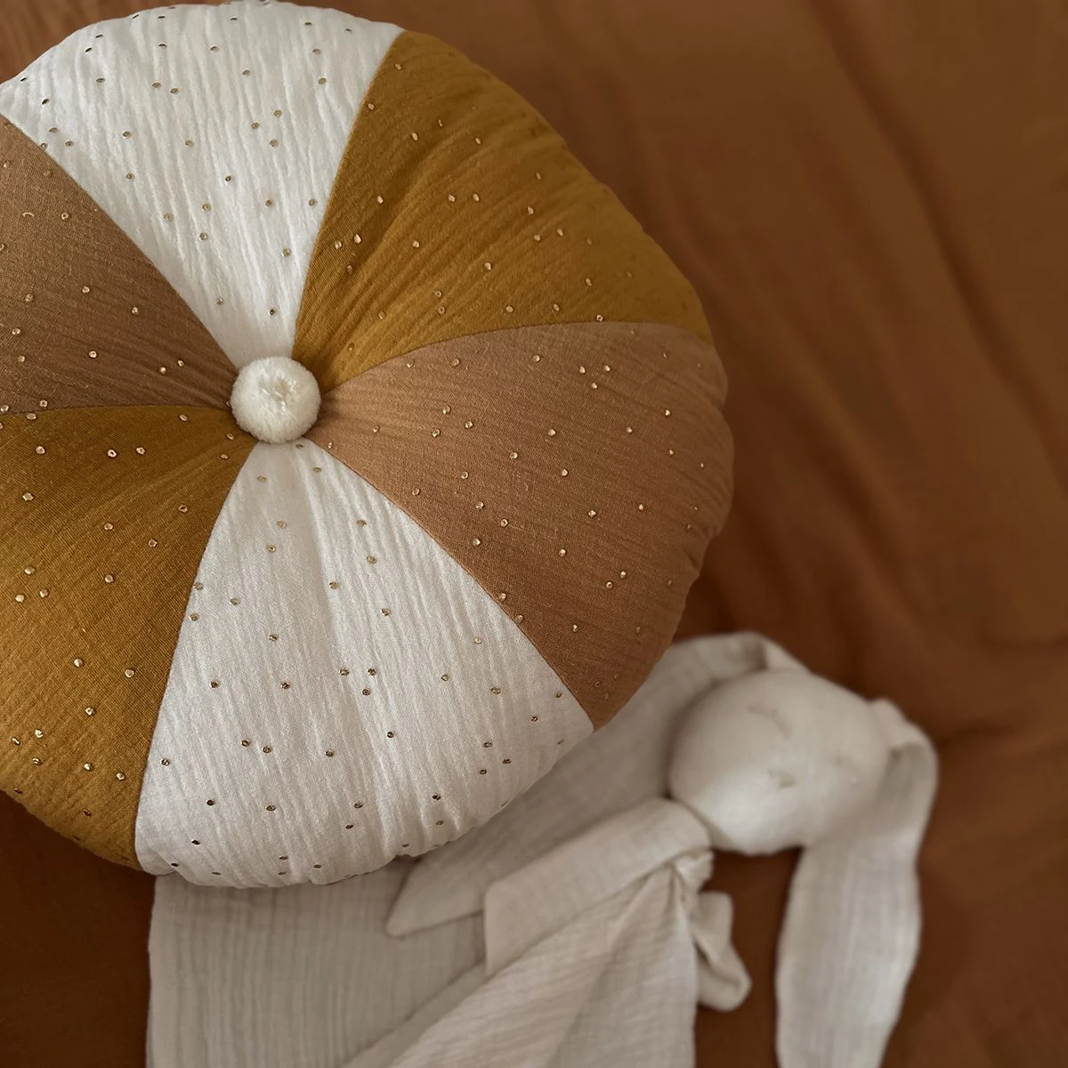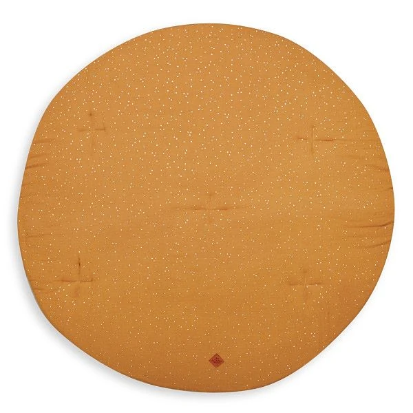 The mat is made of soft, pleasant-to-touch cotton muslin. It is decorated with gold dots, which add to its elegant look. Inside it has fluffy, anti-allergenic silicone filling.
