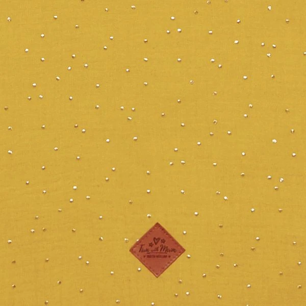 The mat is made of soft, pleasant-to-touch cotton muslin. It is decorated with gold dots, which add to its elegant look. Inside it has fluffy, anti-allergenic silicone filling.