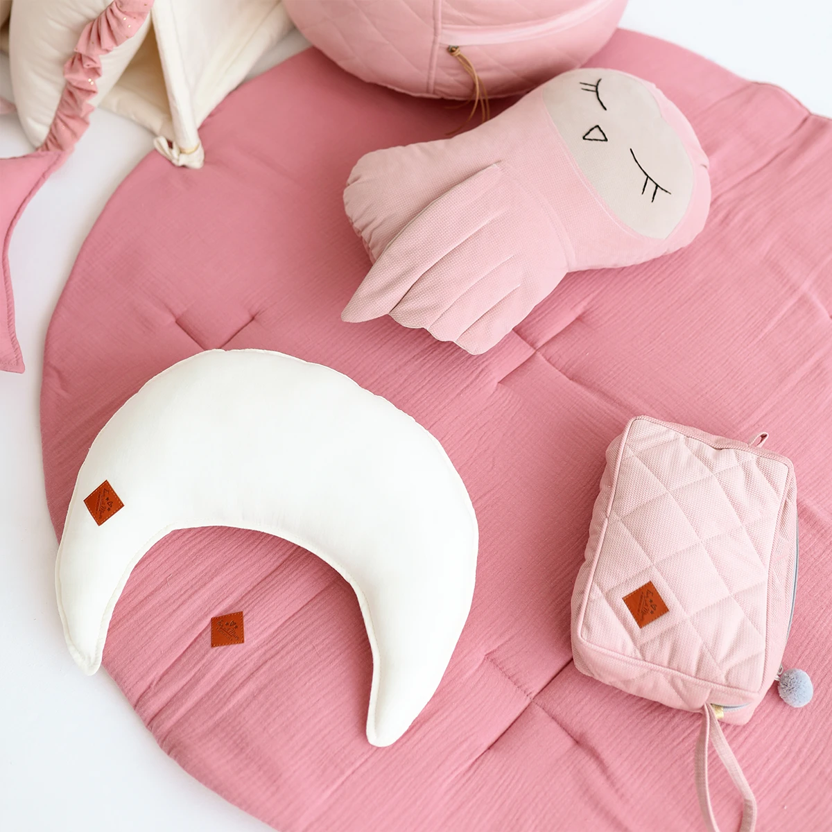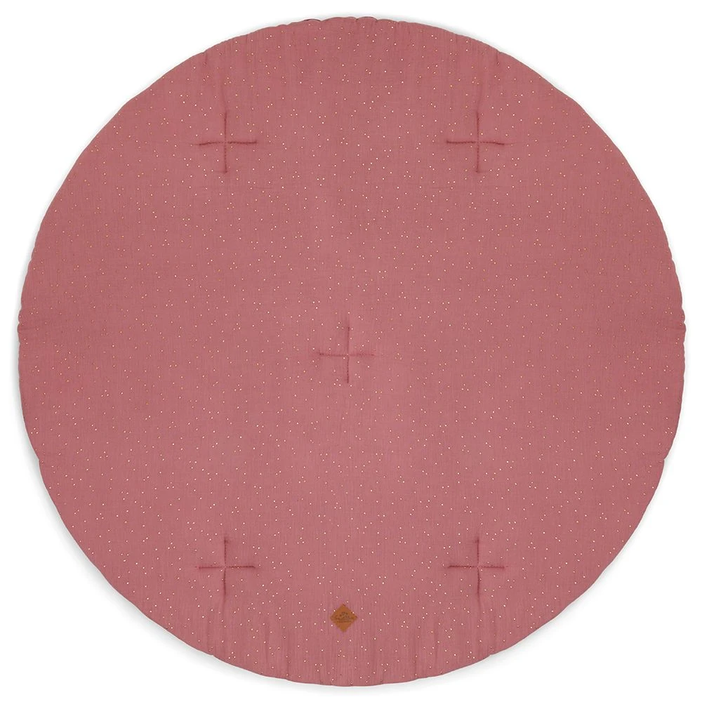 The mat is made of soft, pleasant-to-touch cotton muslin. It is decorated with gold dots, which add to its elegant look. Inside it has fluffy, anti-allergenic silicone filling.