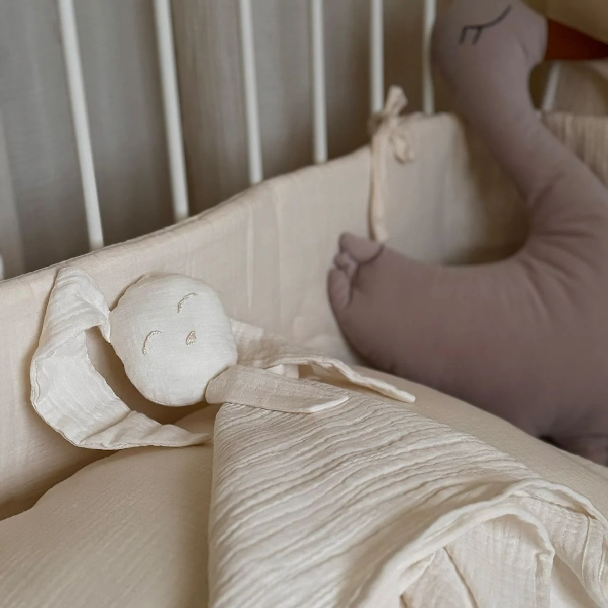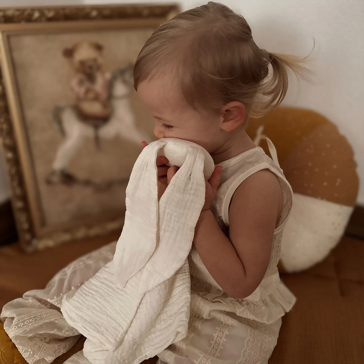 A unique toy that can also be used as a diaper for a baby. The unique shape and extremely soft and pleasant cotton muslin will encourage the child to grab it with his hands.