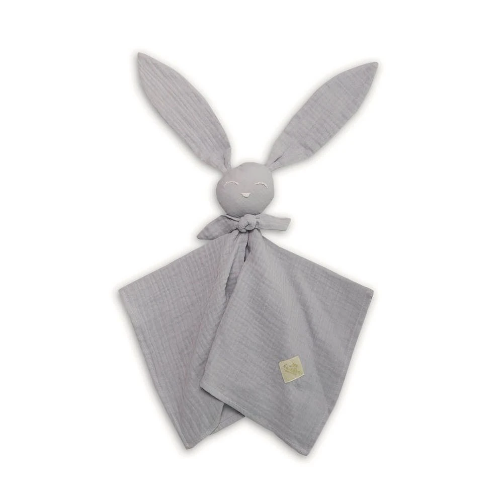 The product has a round embroidered head with long ears resembling the shape of a rabbit. The toy’s head is filled with high-quality silicone fluff.