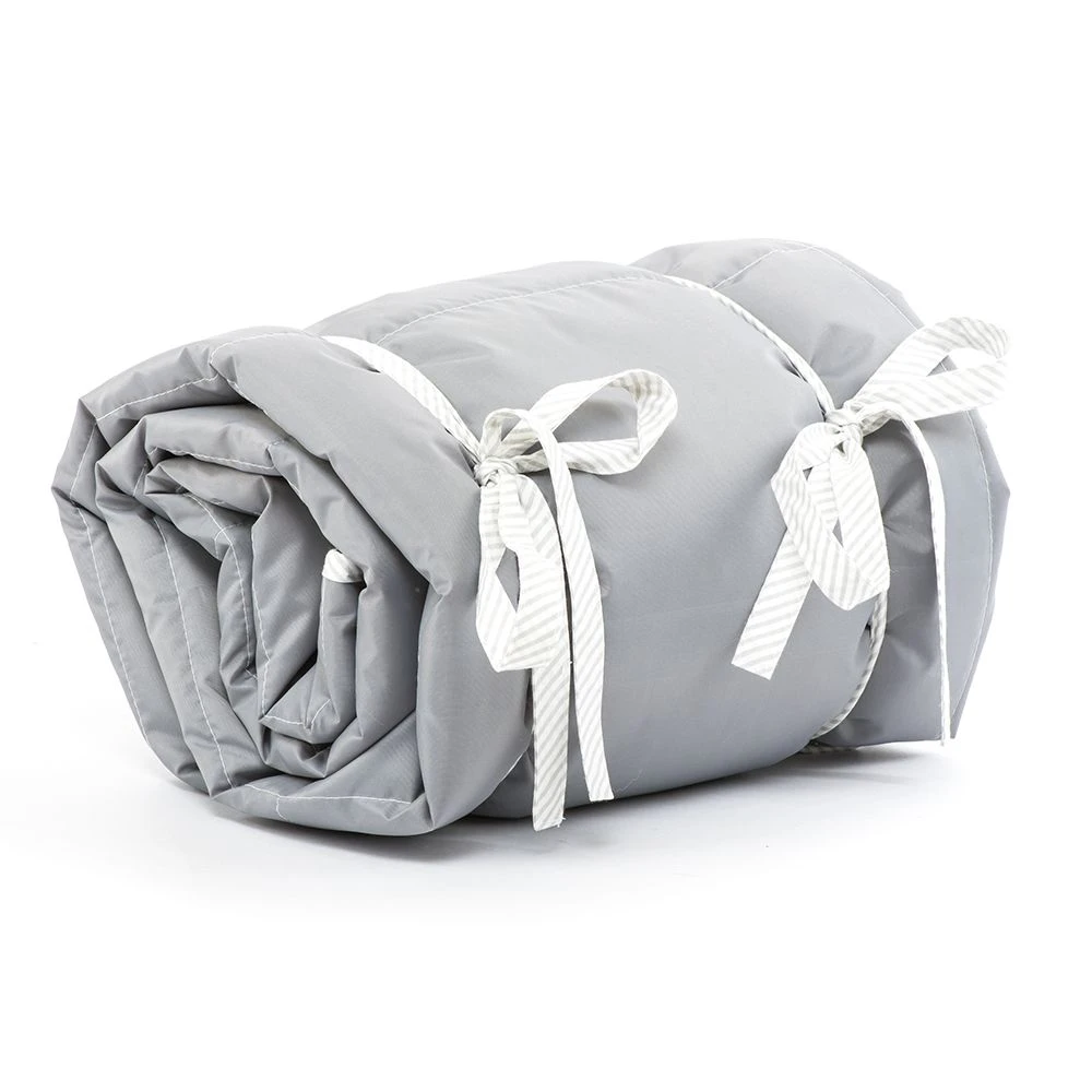 The picnic mat may be folded to a small size and tied with specially-designed colourful bands. The practical handle makes it easy to carry or attach to stroller handles, etc.