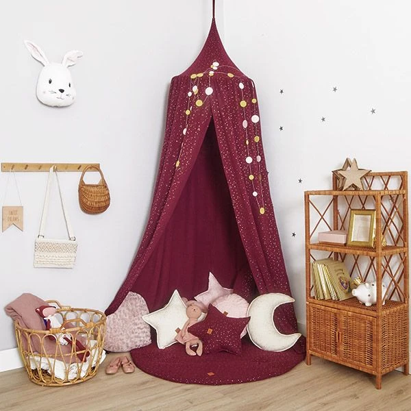 Decorative round cushion from the muslin collection. The cushion will be a beautiful decoration for a child’s room. It will add a cosy and stylish touch to the interior. The cushion fits perfectly with our canopy. In combination with other cushions from the collection, it will create a unique arrangement.