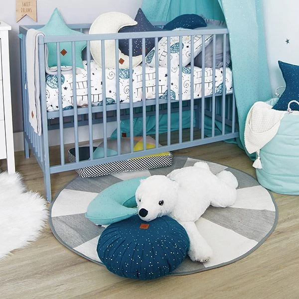 The cushion will also be useful when resting and sleeping. It is soft and pleasant to the touch. It is made of fine cotton muslin. Inside it has an anti-allergenic silicone filling. The cushion is decorated with gold dots, which add even more charm and style.