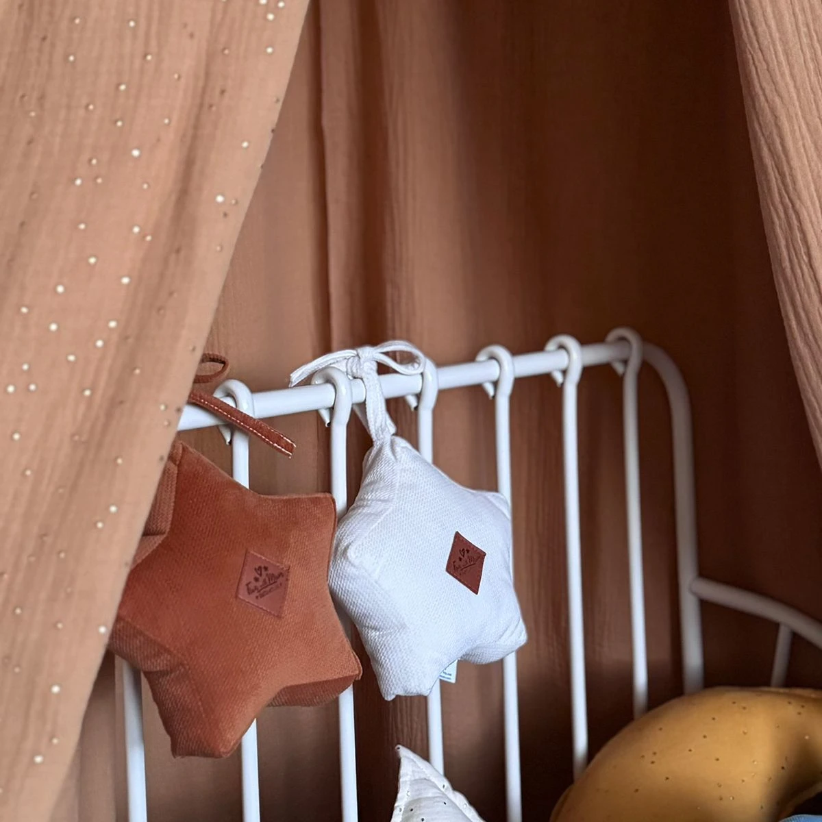 A unique, soft toy in the shape of a star made of soft and elegant velvet. Inside the rattle, there is a fun bell that will cheer up the child, encourage it to play and grasp it with its hands.