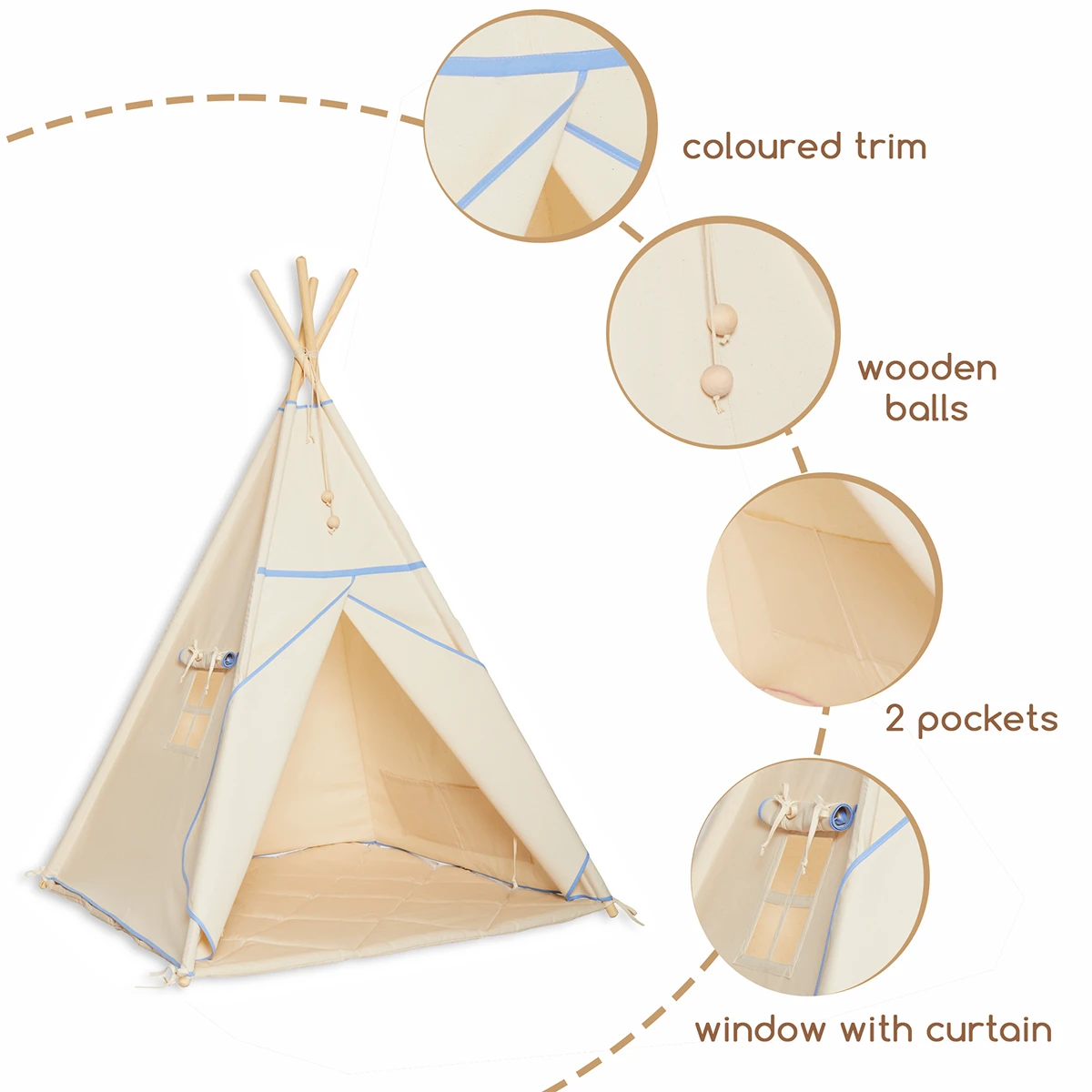 The tepee tent will be a great hideout for your child for any season. It will be perfect for your apartment, patio, balcony or garden. It will embellish any interior and make it cosy. It can hold not only the child, but also the parent, happy to read the little one a bedtime story.