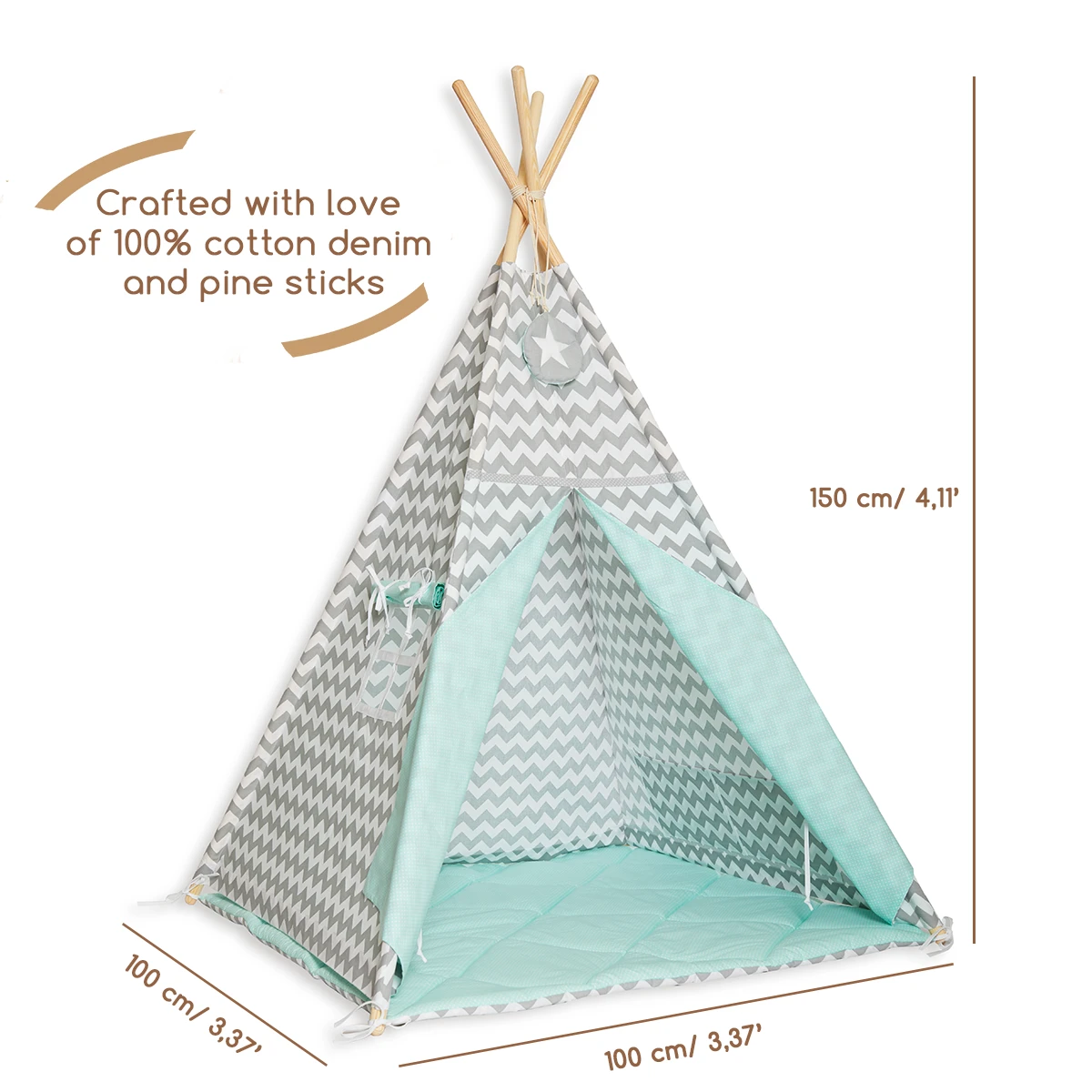 Teepee Tent + Floor Mat + Pillows – Fresh Mint