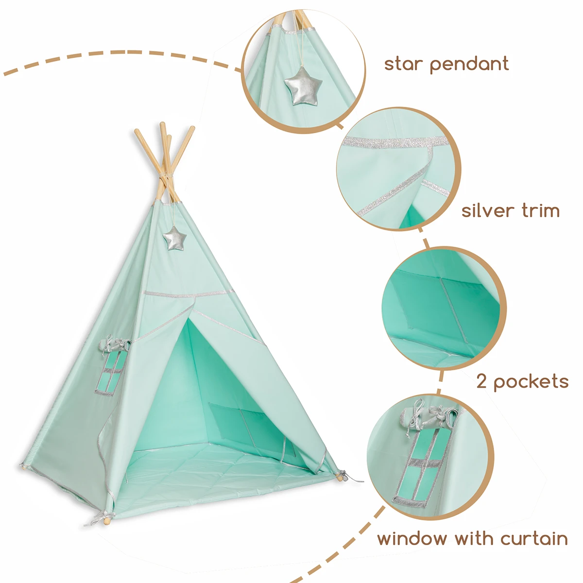 The teepee tent will be a great hideout for your child for any season. It will be perfect for your apartment, patio, balcony or garden. It will embellish any interior and make it cosy. It can hold not only the child, but also the parent, happy to read the little one a bedtime story.