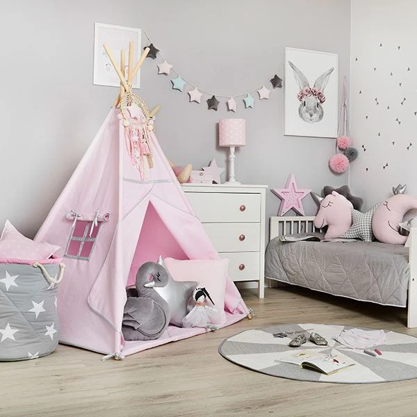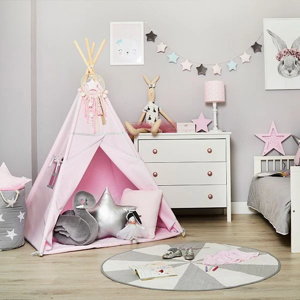 Teepee Tent + Floor Mat + Pillows Silver Pink