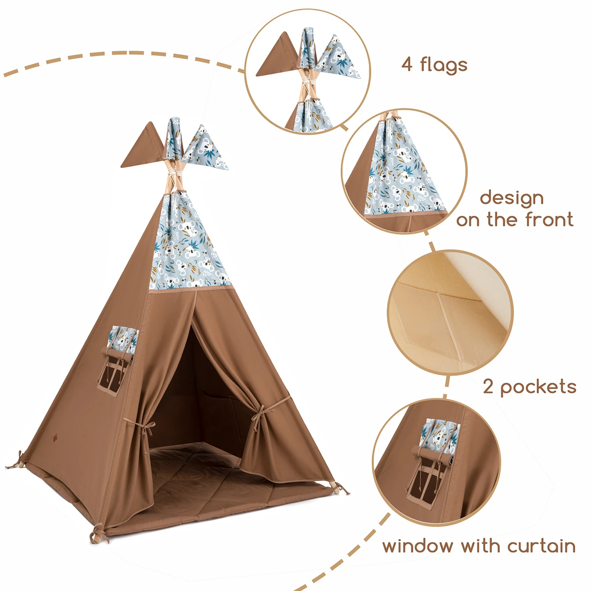 The teepee tent will be a great hideout for your child for any season. It will be perfect for your apartment, patio, balcony or garden. It will embellish any interior and make it cozy. It can hold not only the child but also the parent, happy to read the little one a bedtime story.