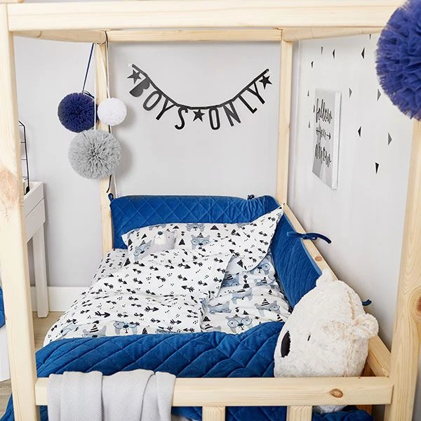 The duvet and pillow were manufactured using top-quality materials to ensure comfortable and safe sleep for your baby. The duvet and pillow are two-sided and made with two 100% cotton fabrics in varied colours. The inner part of the duvet and pillow contains hypoallergenic, fluffy silicone filling that ensures warmth and breathability. The two-sided colour scheme is the reason why this set will never be boring. You can change the interior arrangement of your child’s room.