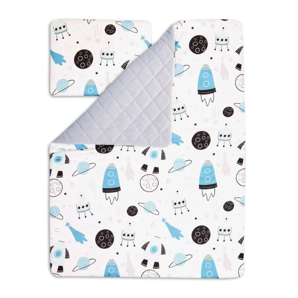 Colourful and soft set for preschool children composed of a blanket and pillow. The blanket and pillow will make your child’s bed cosier. These products are ideal for preschool during naps, or in travel. The two-sided colour scheme is the reason why this set will never be boring. You can change the interior arrangement of your child’s room.